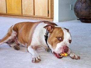 This is Tiger. He spent 7 years outside on concrete at the end of a heavy chain, never knowing a moment of kindness. When the people moved away and left him, the new renters gave a neighbor the weekend to find him a place to go, or be killed. Several rescues, including us, banded together to find him a perfect, loving home. He is truly our Cinderella poster boy.