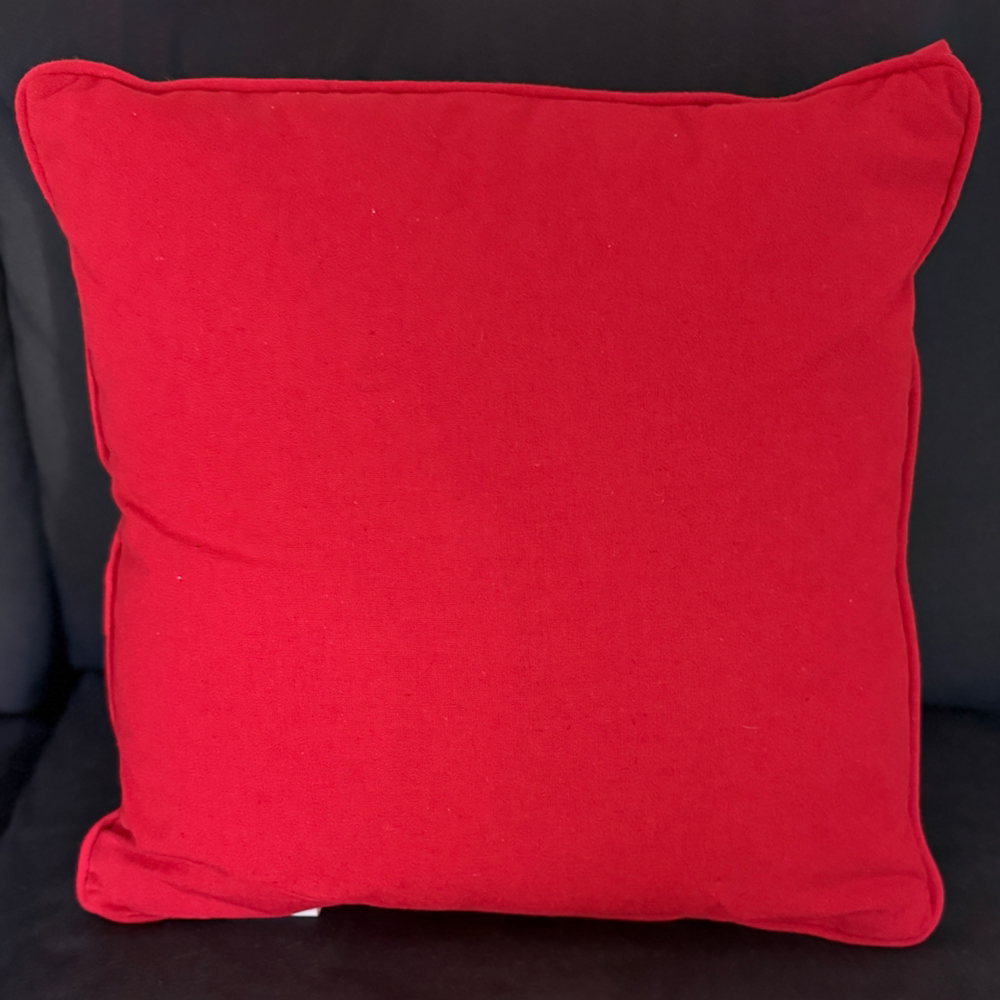 Everybody loves Black Labs and everybody loves pillows, so here is something for everybody! A large soft comfy holiday cushiony Black Lab pillow to lean against after that big holiday meal. 18″ square.