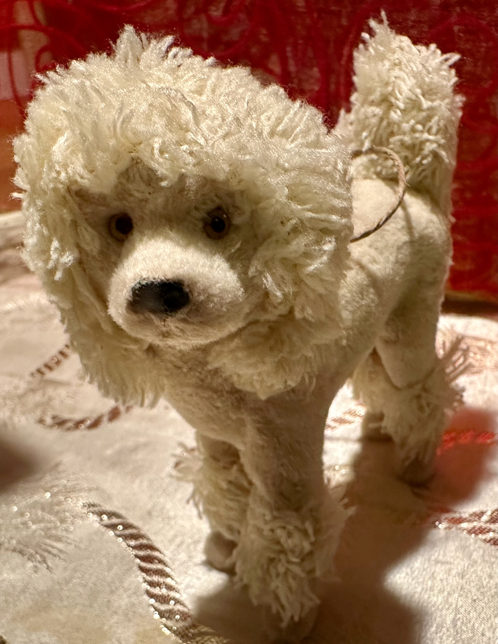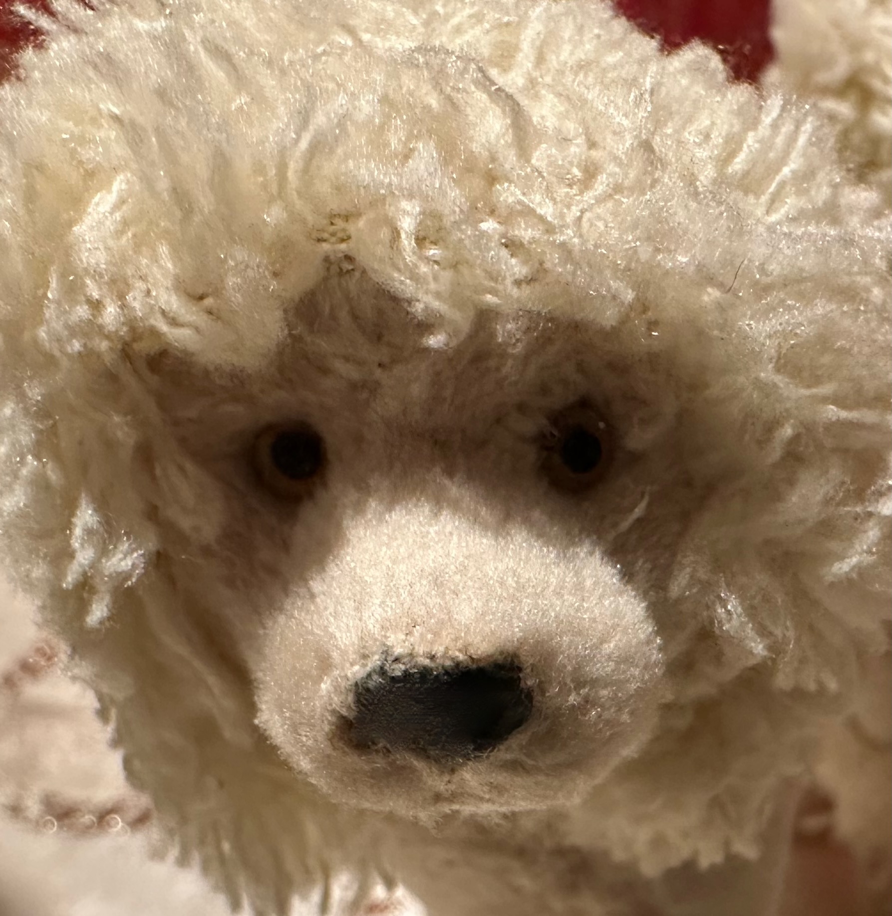 The softest fluffiest dog of the holiday. Amber eyes, boopable nose, and fluffiness in all the right places. 4″ tall by 4.5″ across. Light as a feather. What a face!