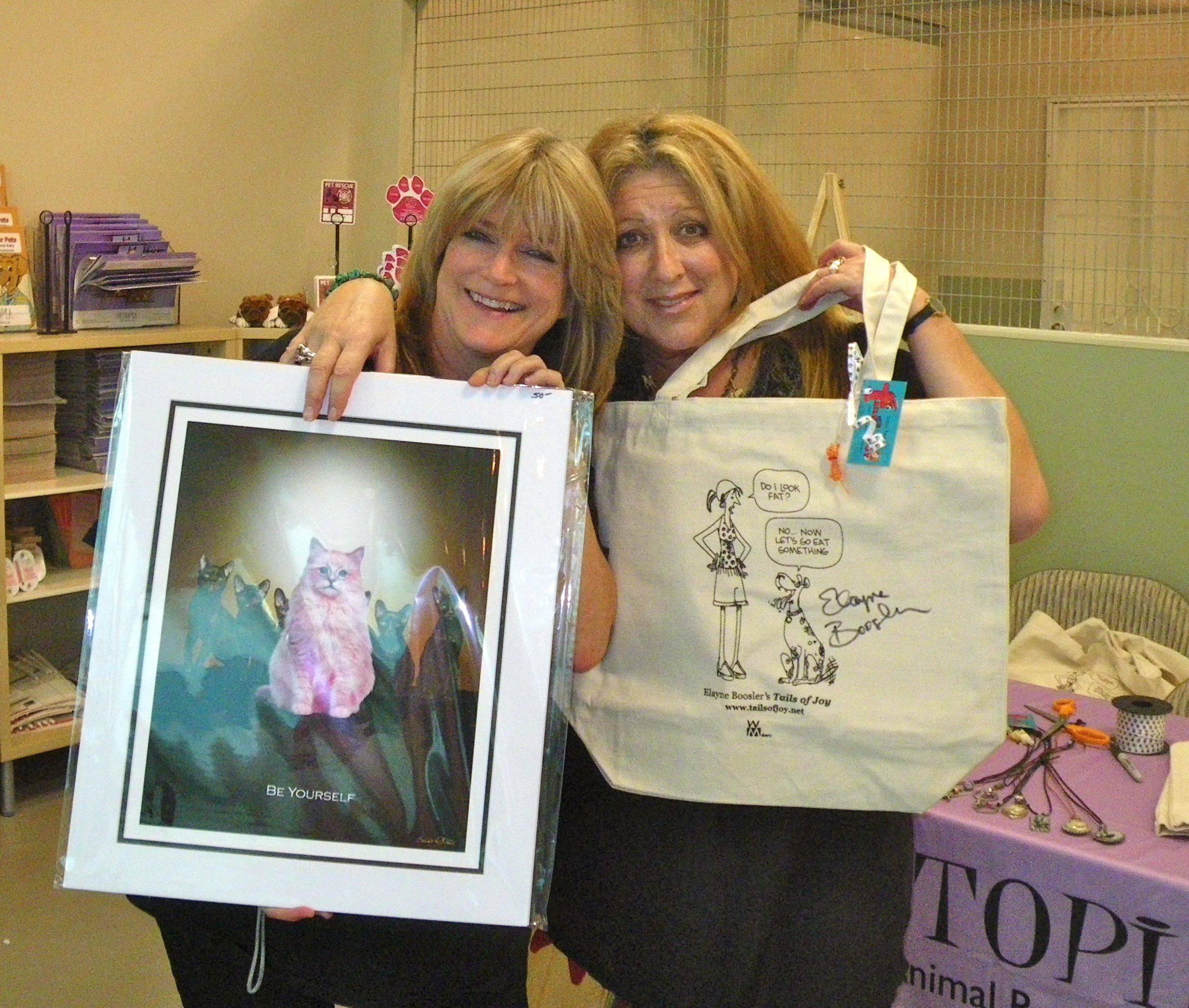 Elayne with the fab Susan Olsen, a Board Member of Precious Paws rescue. They’re at Petopia, a new pet shop in Woodland Hills, CA, that sells ONLY animals rescued from shelters. We hope this catches on across the country. Don’t Shop, Adopt!
